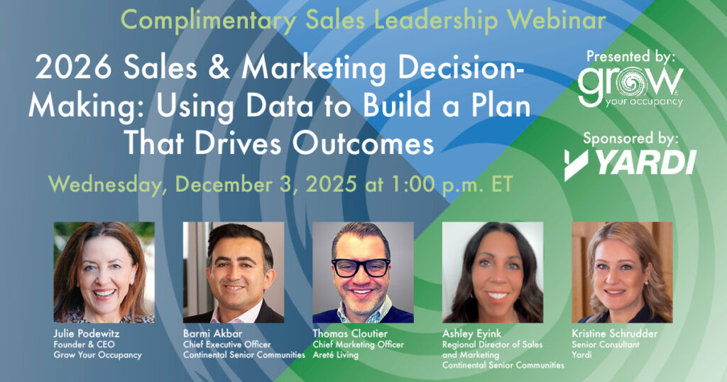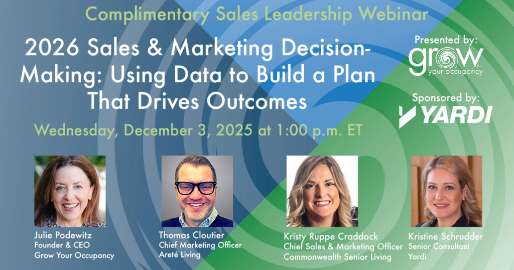 I highly recommend Grow Your Occupancy for any senior living organization seeking next level sales results and resources for growth.”